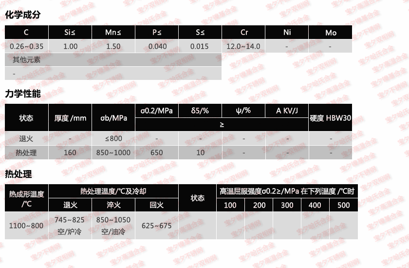 X30Cr13板材可分别称为X30Cr13不锈钢板、X30Cr13钢板、X30Cr13卷板、X30Cr13开平板、X30Cr13带钢、X30Cr13冷轧板、X30Cr13热轧板、X30Cr13薄板、X30Cr13中板、X30Cr13厚板、X30Cr13特厚板等。