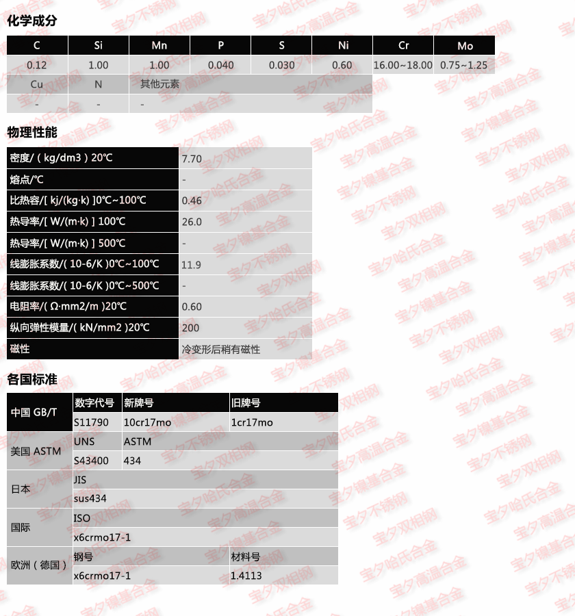 牌 号:1cr17mo